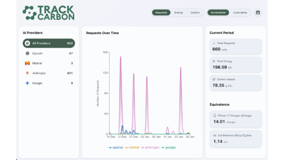 Dans le même temps, la Fondation Sahar et l’association Trackarbon lancent TrackCarbon, une application gratuite permettant au grand public de suivre la consommation énergétique et l’empreinte carbone estimée de ses usages quotidiens de l’IA.